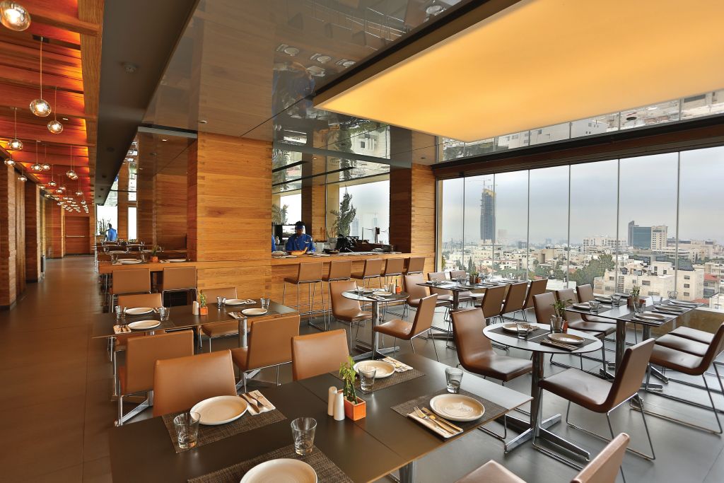 Restoran ini memiliki pemandangan kota Amman yang menakjubkan karena terletak di lantai tujuh Al Qasr Metropole Hotel. Menawarkan pemandangan panorama seluruh kota dengan dekorasi elegan bercirikan batang bambu hias raksasa yang tergantung di langit-langit, serta suasana hangat dan kekeluargaan yang tercipta dari dinding restoran yang dilengkapi dengan kayu alami, memberikan kesan modern dan modern pada tempat tersebut. suasana intim pada saat bersamaan. Selain itu, restoran ini memiliki area khusus sushi yang menyajikan masakan Jepang yang berbeda dan beragam, seperti sushi, sashimi, dan hidangan mie.Menu restoran juga mencakup hidangan internasional, selain berbagai macam salad dan makanan pembuka. Restoran ini juga menyediakan bagian khusus untuk non-perokok sehingga pengunjung dapat menikmati makanan dengan nyaman.
